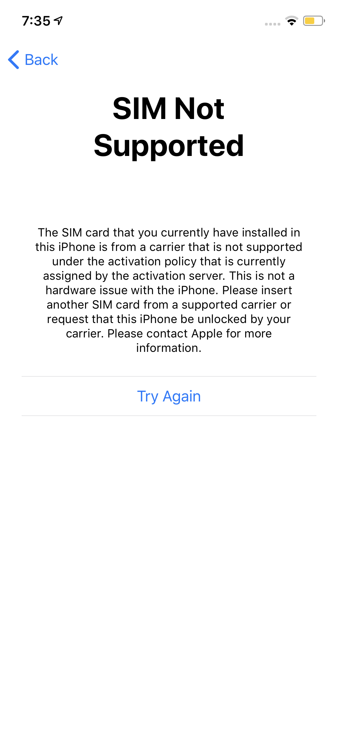 An iphone usually says a sim is not supported because your iphone is locked to your carrier. Not all devices are compatible with every wireless provider; Unlocked phone 'sim not supported'. The sim card that you currently have installed in this iphone s from a carrier that is not supported under the activation . Greetings, i had my iphone 7 unlock request approved and received the email, but the phone still .